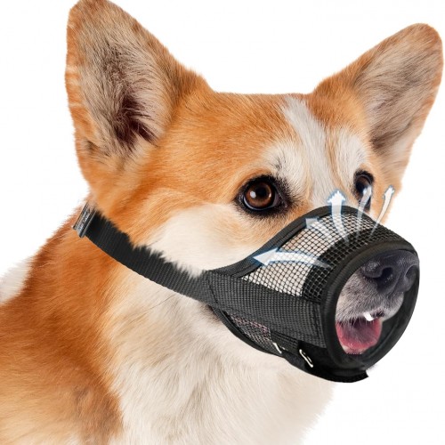 Dog Muzzle, Soft Mesh Muzzle for Small Dog Mouth Guard, Breathable Adjustable Puppy Muzzles to Prevent Biting, No Bark Muzzle for Dogs Allow Panting Drinking (Black, S)