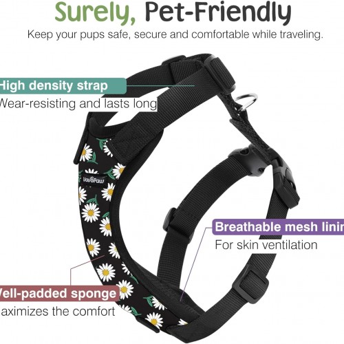 Dog Seat Belt, Safety Vest Dog Car Harness with Adjustable Buckle Dog Seat Belt for Vehicle Nylon Pet Safety Seat Belts Heavy Duty(S, Black Daisy)