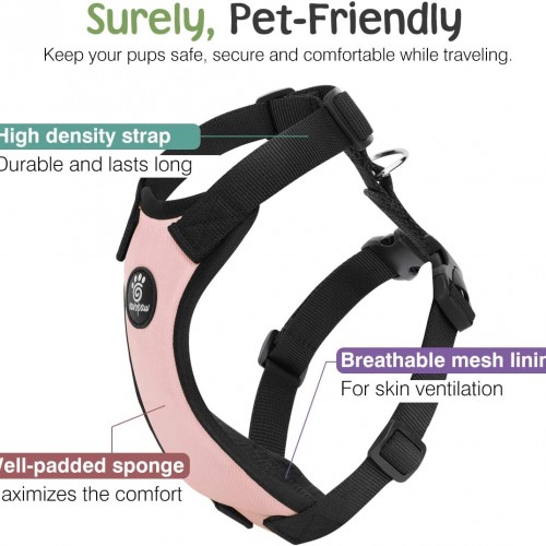 Dog Seat Belt, Safety Vest Dog Car Harness with Adjustable Buckle Dog Seat Belt for Vehicle Nylon Pet Safety Seat Belts Heavy Duty(L, Pink)