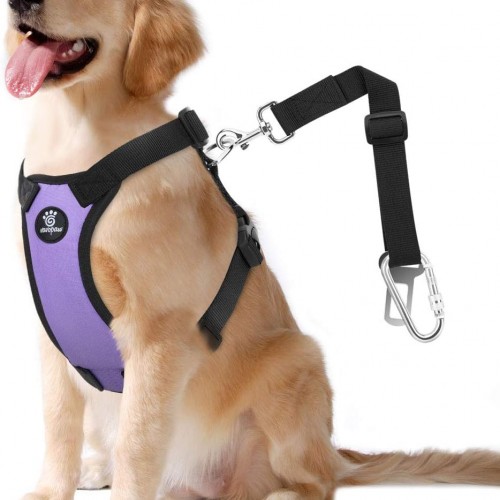 Dog Seat Belt, Safety Vest Dog Car Harness with Adjustable Buckle Dog Seat Belt for Vehicle Nylon Pet Safety Seat Belts Heavy Duty(M, Purple)