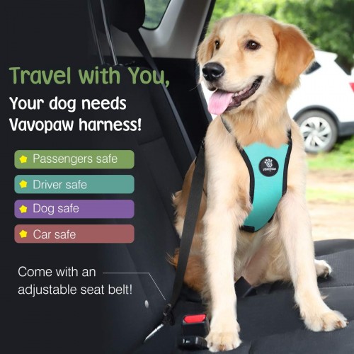 Dog Seat Belt, Safety Vest Dog Car Harness with Adjustable Buckle Dog Seat Belt for Vehicle Nylon Pet Safety Seat Belts Heavy Duty(M, Lake Blue)