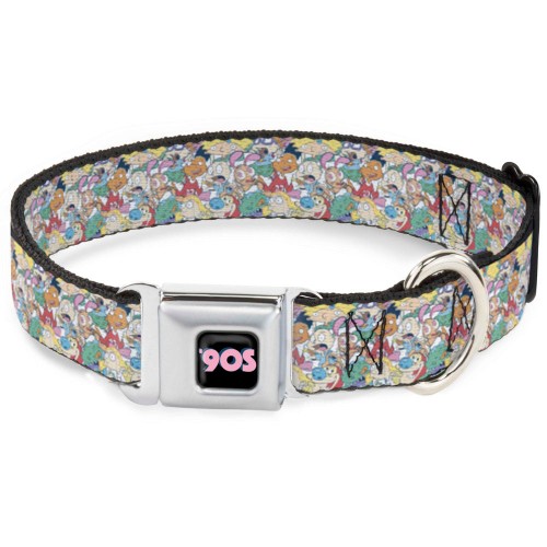 Nick 90’S Icon Black/Blue/Pink Seatbelt Buckle Collar – Nick 90’s Rewind 7-Character/4-Logo Collage