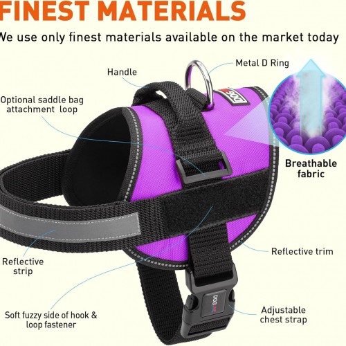 Dogline Dog Harness, Reflective No-Pull Adjustable Vest with Handle for Walking, Training, Breathable, No – Choke Harness for Small, Medium or Large Dogs Room for Patches Girth 27 to 34 in Purple