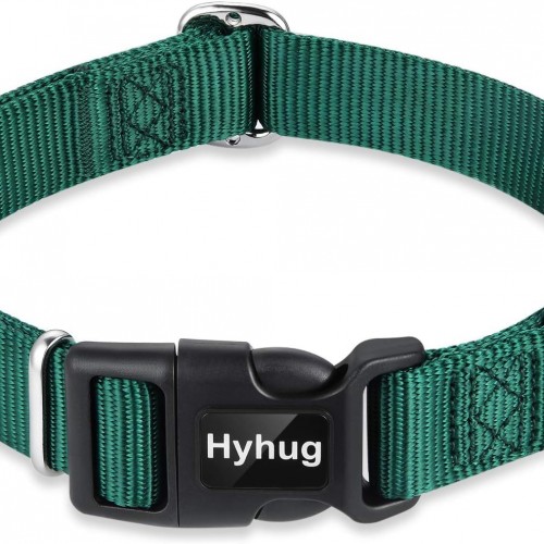 Hyhug Pets Solid Color Classic Regular Heavy Duty Basic Collar for Large Breeds Dogs Daily use, Unique Design Adjustment Triglide Slide Can Attached Name Tag Accessories. (Large, Dark Green)