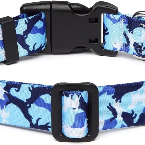 Mercano Adjustable Dog Collar – Special Design Patterns, Soft Nylon Comfortable Durable Pet Collar for Small Medium Large Dogs (XS, Dog Camouflage Blue)