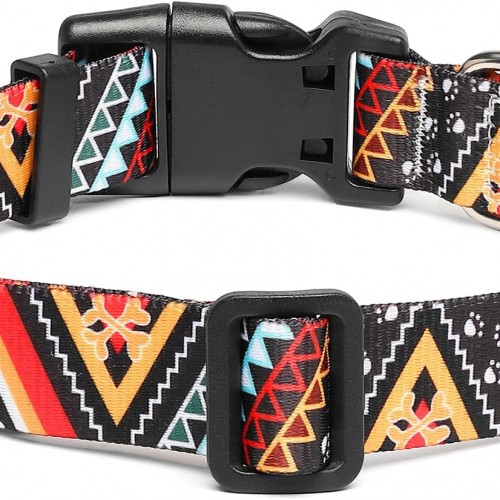 Mercano Adjustable Dog Collar – Special Design Patterns, Soft Nylon Comfortable Durable Pet Collar for Small Medium Large Dogs (XS, Ethnic Gold)