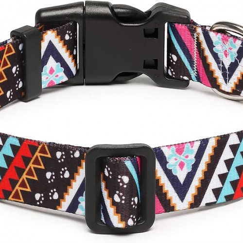 Mercano Adjustable Dog Collar – Special Design Patterns, Soft Nylon Comfortable Durable Pet Collar for Small Medium Large Dogs (XS, Ethnic Pink)