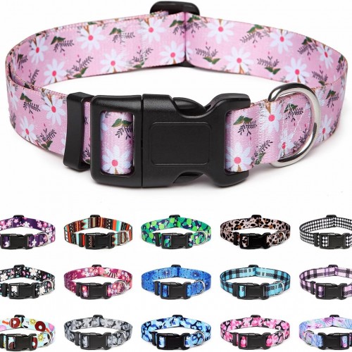 Mercano Adjustable Dog Collar – Special Design Patterns, Soft Nylon Comfortable Durable Pet Collar for Small Medium Large Dogs (XS, Pink White Flower)