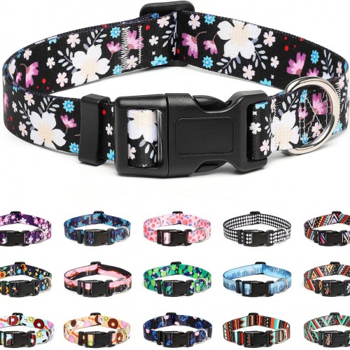 Mercano Adjustable Dog Collar – Special Design Patterns, Soft Nylon Comfortable Durable Pet Collar for Small Medium Large Dogs (XS, Floral White)