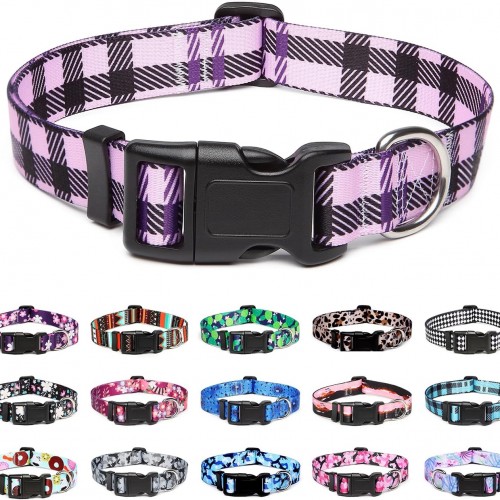 Mercano Adjustable Dog Collar – Special Design Patterns, Soft Nylon Comfortable Durable Pet Collar for Small Medium Large Dogs (XS, Purple Plaid)