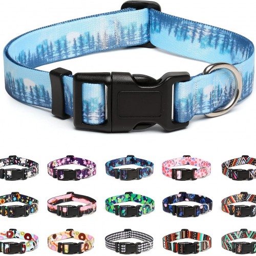 Mercano Adjustable Dog Collar – Special Design Patterns, Soft Nylon Comfortable Durable Pet Collar for Small Medium Large Dogs (XS, Forest)