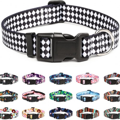 Mercano Adjustable Dog Collar – Special Design Patterns, Soft Nylon Comfortable Durable Pet Collar for Small Medium Large Dogs (XS, Rhomb)