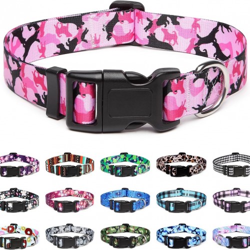 Mercano Adjustable Dog Collar – Special Design Patterns, Soft Nylon Comfortable Durable Pet Collar for Small Medium Large Dogs (XS, Dog Camouflage Pink)