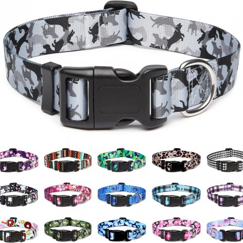 Mercano Adjustable Dog Collar – Special Design Patterns, Soft Nylon Comfortable Durable Pet Collar for Small Medium Large Dogs (XS, Dog Camouflage Grey)