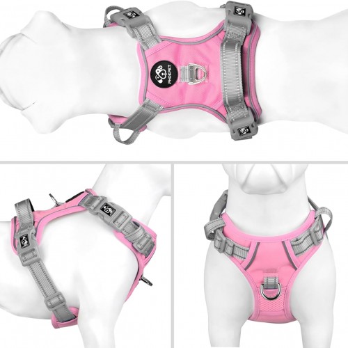 PHOEPET No Pull Dog Harness, Unique Colors Reflective Adjustable Dog Vest, with Soft Training Handle Metal Clips for Small Medium Large Dogs (Baby Pink Base & Grey Straps,M)