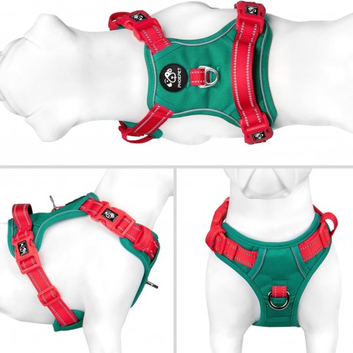 PHOEPET No Pull Dog Harness, Unique Colors Reflective Adjustable Dog Vest, with Soft Training Handle Metal Clips for Small Medium Large Dogs (Dark Green Base & Red Straps,M)