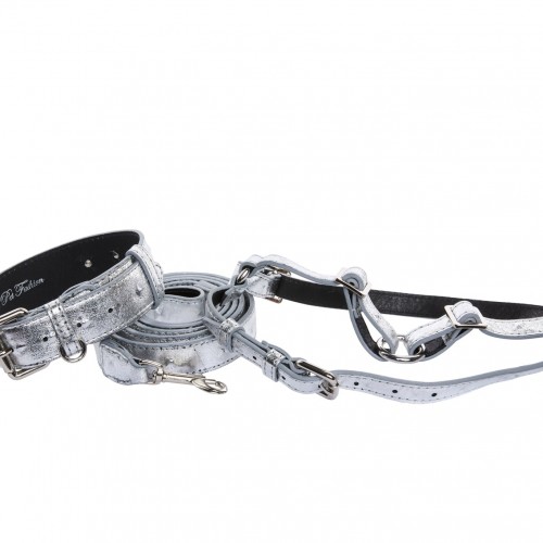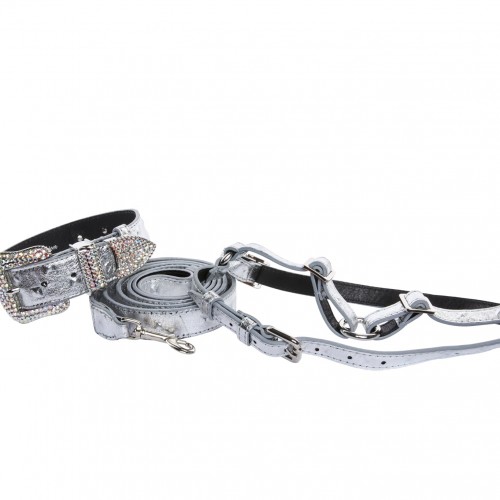 Silver Studded Italian Leather Dog Collar, Harness & Leash Set