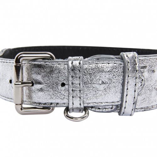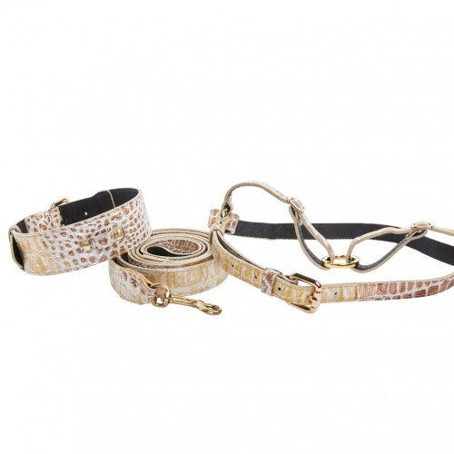 Silver/Bronze/Gold Italian Leather Embossed Croc Classic Collar, Leash & Harness Set