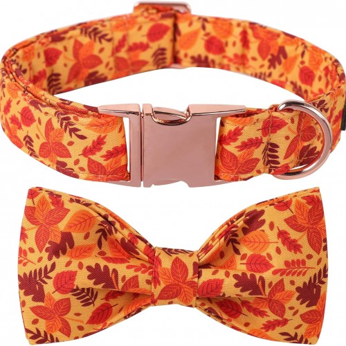 Lionet Paws Dog Collar with Bowtie – Cute Cotton Adjustable Fall Bowtie Dog Collar with Metal Buckle for Small Medium Large Dog Girl Boy Gift, S, Neck 10-16in