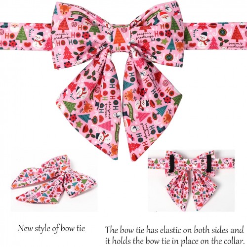 Lionet Paws Christmas Dog Collar with Sailor Bow, Cute Ho Christmas Tree Snowman Pink Dog Collar Bow Tie for X-Large Dogs, Neck 16-26 inches