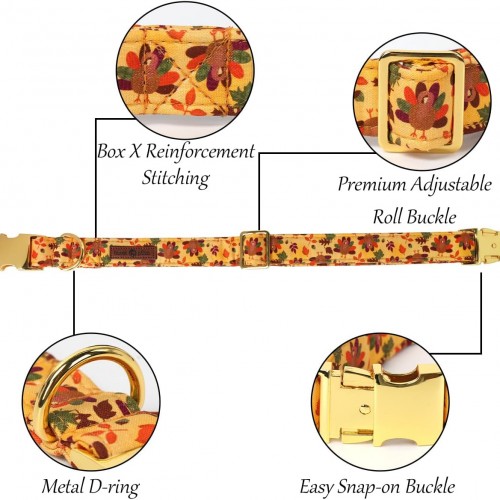 Lionet Paws Thanksgiving Day Dog Collar with Bowtie, Dog Bowtie Collar with Metal Buckle for Dogs and Cats, Adjustable Comfortable Turkey Dog Collar Girl Boy Gift, S, Neck 10-16 in