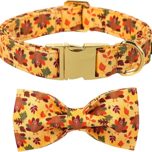 Lionet Paws Thanksgiving Day Dog Collar with Bowtie, Dogs Bowtie Collar with Metal Buckle for Dogs and Cats, Adjustable Comfortable Turkey Dog Collars Girl Boy, S, Neck 10-16 in