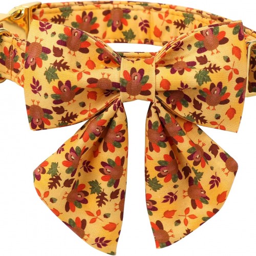Lionet Paws Thanksgiving Day Dog Collar with Bowtie, Dogs Sailor Bow Collar with Metal Buckle for Dogs, Adjustable Comfortable Dog Collars Girl, XS, Neck 8-12 in