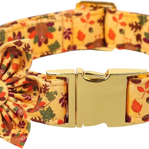 Lionet Paws Thanksgiving Dog Collar, Cute Fall Dog Collar for Medium Dogs, Adjustable Cotton Pet Collars for Small Medium Dogs