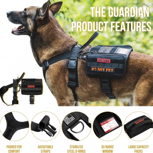 OneTigris Service Dog Vest Harness, Service Dog Cape Guardian Dog Backpack Harness with Pouches Dog Saddle Bag for Small Medium and Large Dogs (Black, Large)