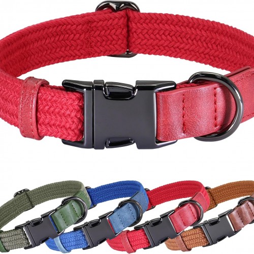 PET ARTIST Soft Cotton Dog Collar for Medium Dogs in Glamorous Red, Simple Dog Collar with Quick Release Metal Buckle & D Ring, M Size (13-21″)