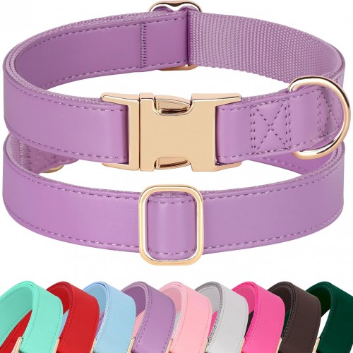 PET ARTIST PU Leather Dog Collar, Bright & Stylish Purple Dog Collar Girl with Quick Release Gold Metal Buckle, Soft Nylon Padded Durable Pet Collars Adjustable for Medium Dogs, Neck Fit 13-19″