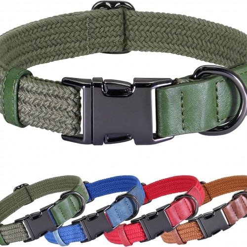 PET ARTIST Soft Cotton Dog Collars for Medium Dogs in Stylish Green, Simple Dog Collar with Quick Release Metal Buckle & D Ring, M Size (13-21″)