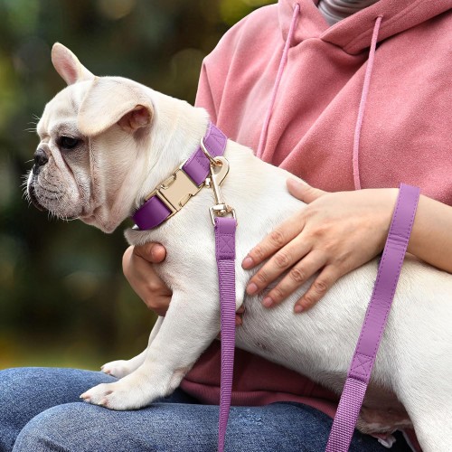 PET ARTIST PU Leather Dog Collar, Bright & Stylish Purple Dog Collar Girl with Quick Release Gold Metal Buckle, Soft Nylon Padded Durable Pet Collars Adjustable for Small Dogs, Neck Fit 9-14″