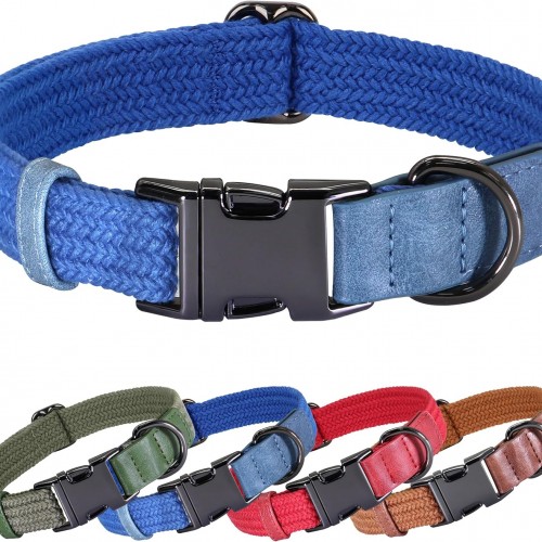 PET ARTIST Soft Cotton Dog Collar for Large Dogs in Tranquil Blue, Simple Dog Collar with Quick Release Metal Buckle & D Ring, L Size (15-23″)