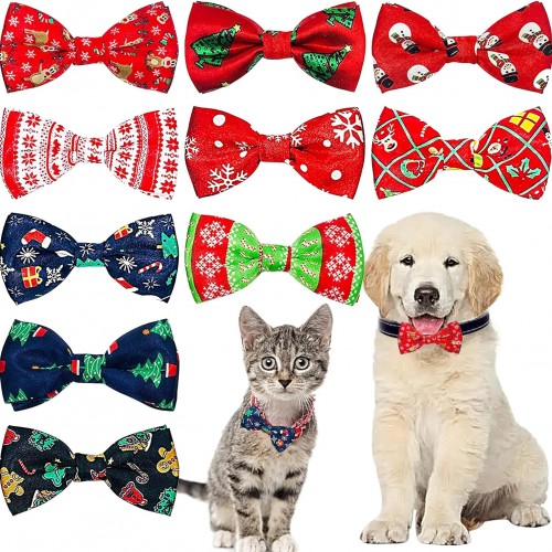 PET SHOW 10pcs/Pack 3.5 * 1.7″ Christmas Small Dogs Collar Attachment Bow Ties Xmas Parties Puppies Cats Collar Charms Accessories Slides Bowties Assorted