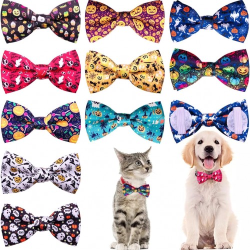 PET SHOW 10pcs Halloween Small Dog Bow Ties for Medium Dogs Puppies Rabbit Cat Detachable Bowties with Elastic Bands Attach to Collar Pet Grooming Collar Attachment Accessories