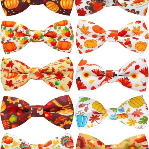 PET SHOW 10 Pack Thanksgiving Small Dog Bow Ties Sliding Collar Attachments Puppy Cats Pumpkin Turkey Patterns Bowties for Medium Dogs Fall Bowknots Party Holiday Pet Grooming Accessories(Small)