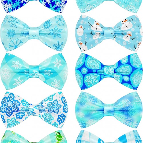 PET SHOW 10 Pack Winter Big Dog Bow Ties for Large Medium Dogs Sliding Collar Attachments Snowflake Bowties Snowman Bowknots Holiday Party Pet Grooming Accessories(Large)