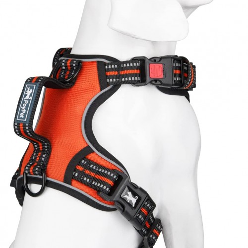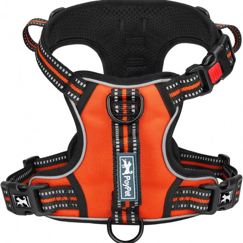 PoyPet No Pull Dog Harness, No Choke Front Clip Reflective Dog Vest with Soft Padded Vertical Handle, 3 Leash Attachments for Small Medium Large Dogs (Orange,L)
