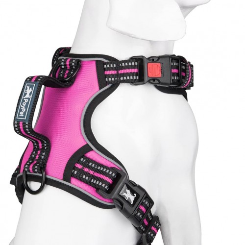 PoyPet No Pull Dog Harness, No Choke Front Clip Reflective Dog Vest with Soft Padded Vertical Handle, 3 Leash Attachments for Small Medium Large Dogs (Pink,L)