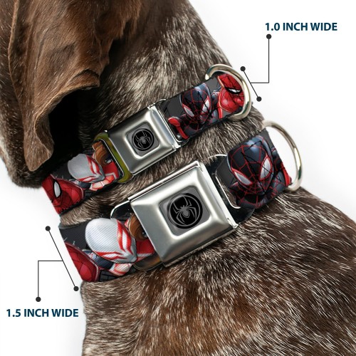 Spider Logo5 Red/Black Seatbelt Buckle Collar – Spider-Man Eyes/Spiders Scattered Reds/Black/White